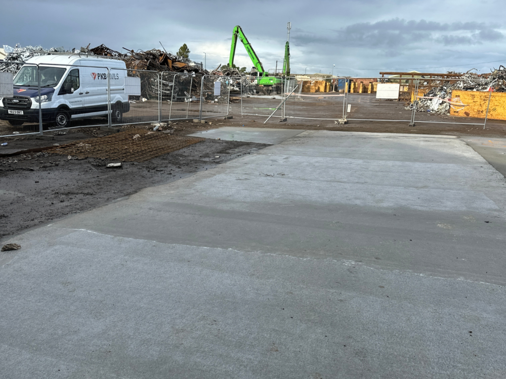 PKB Civils carried out recycling yard concrete repairs across a busy operational site in Sunderland, completing the full programme with no downtime for the client. The yard had suffered deterioration across multiple areas and required a durable, long-term solution capable of standing up to the demands of a high-activity recycling environment.